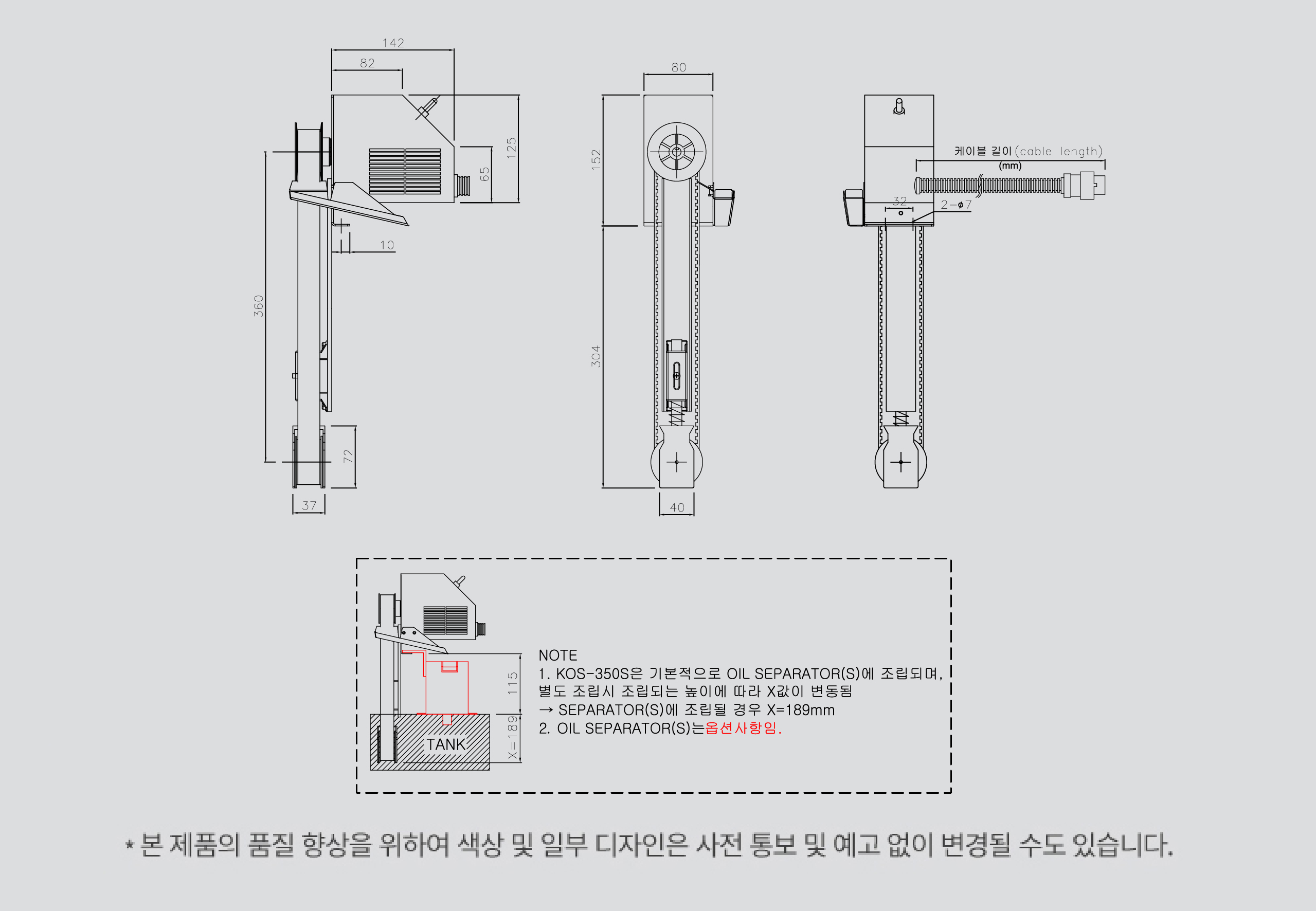 * 오일 스키머 사용시 회수되는 절삭유는 필터링을 요구합니다.