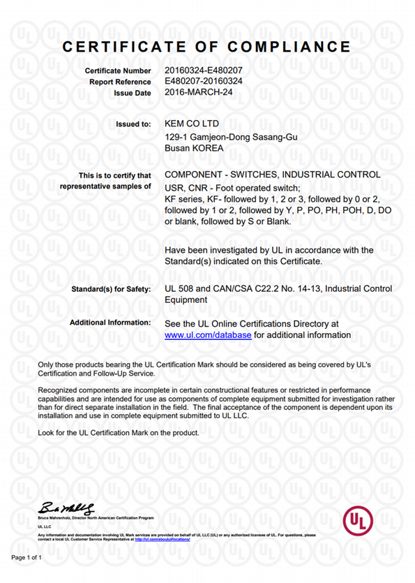 1. 풋스위치 내부 마이크로 스위치는 UL/CE 국제 규격 승인품으로 안전합니다.