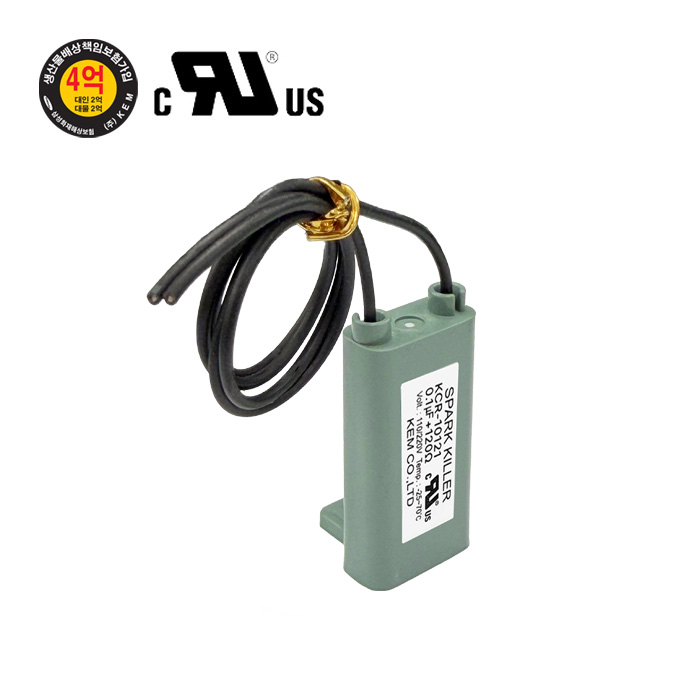 스파크 킬러 (스파크 퀜져)에 투입되는 전원 주파수가 높은 경우 CR회로에 콘덴서의 도통 현상에 의하여 저항에서 높은 발열로 인하여 스파크 킬러에 이상이