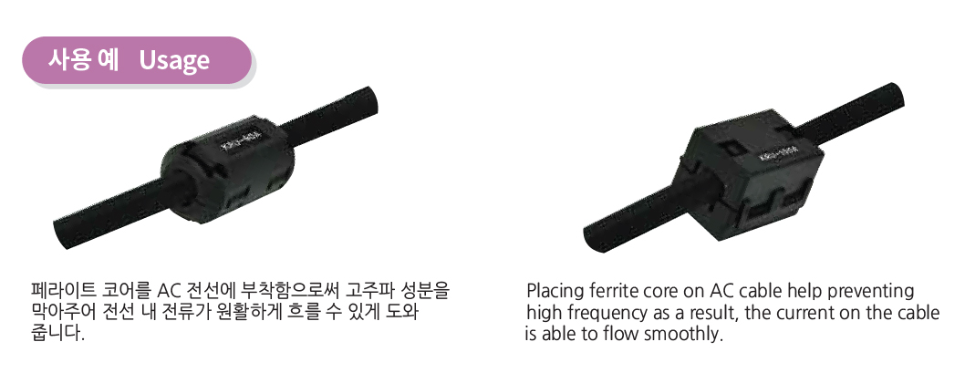 페라이트 코어를 AC 전선에 부착함으로써 고주파 성분을 막아주어