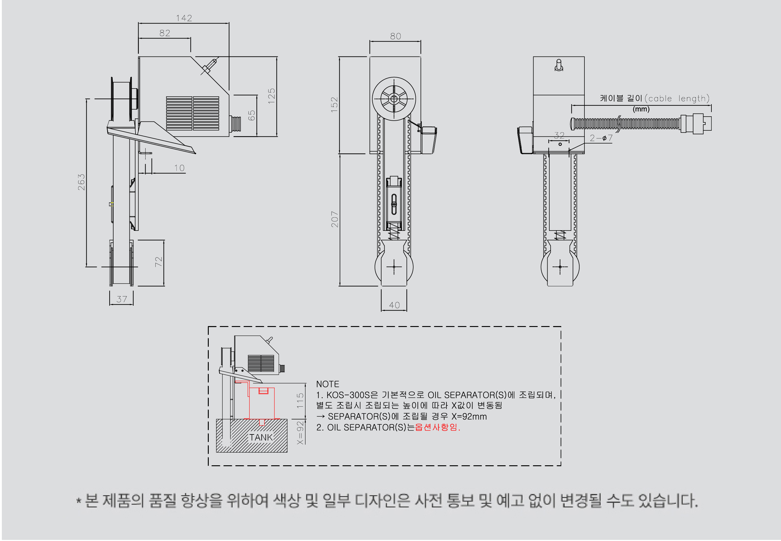 * 오일 스키머 사용시 회수되는 절삭유는 필터링을 요구합니다.