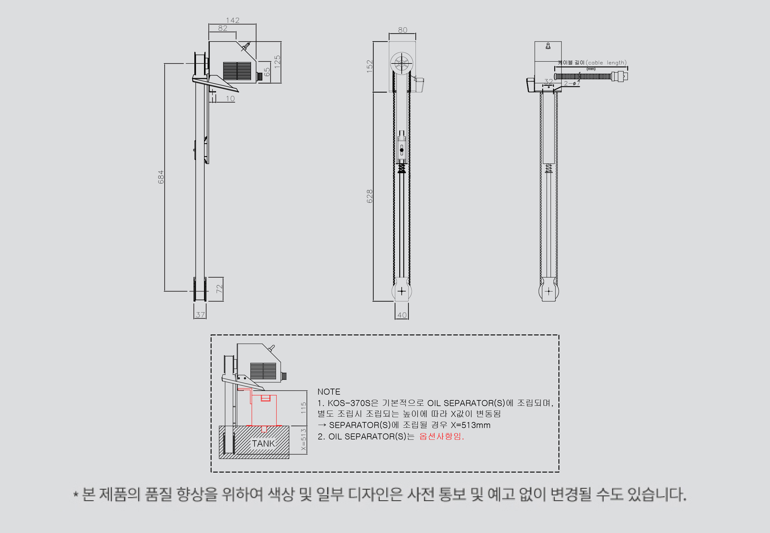 * 오일 스키머 사용시 회수되는 절삭유는 필터링을 요구합니다.