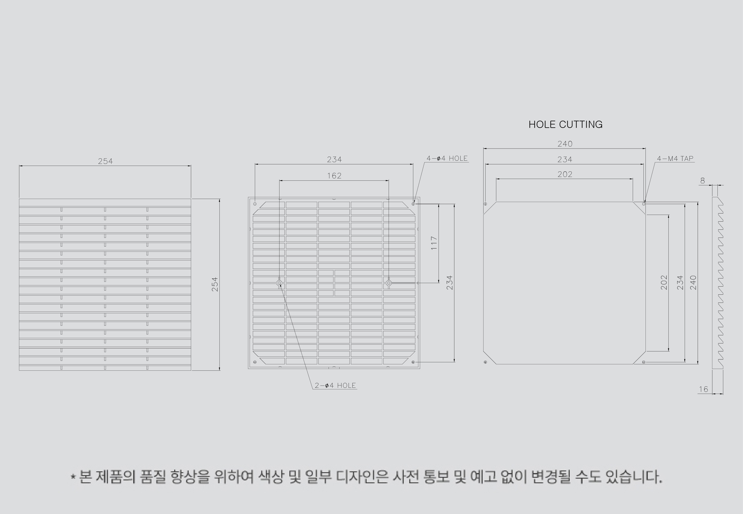 1. 빗살무늬 사출물 케이스로 제작되어 있어 외관이 미려하고 가볍습니다.